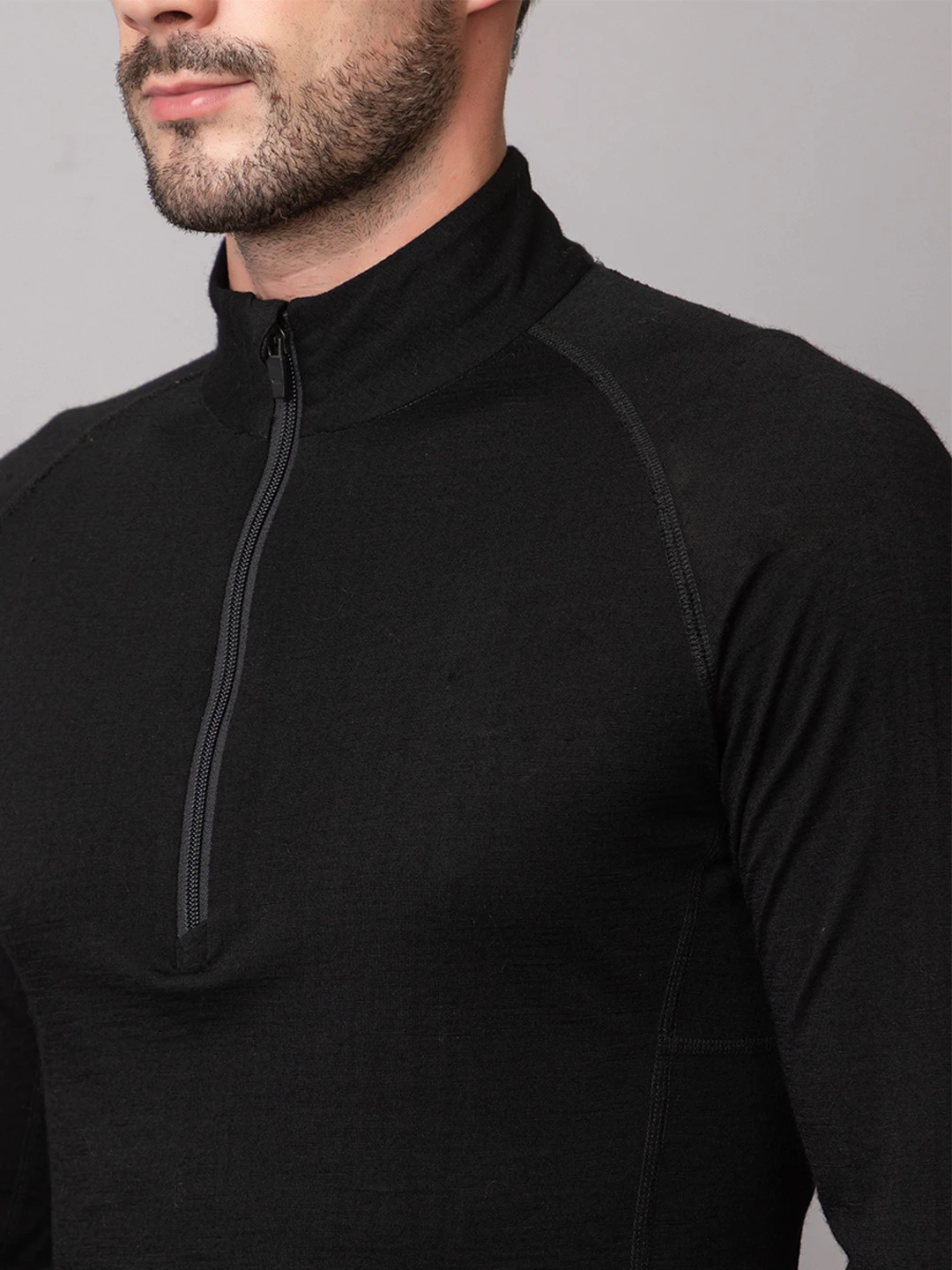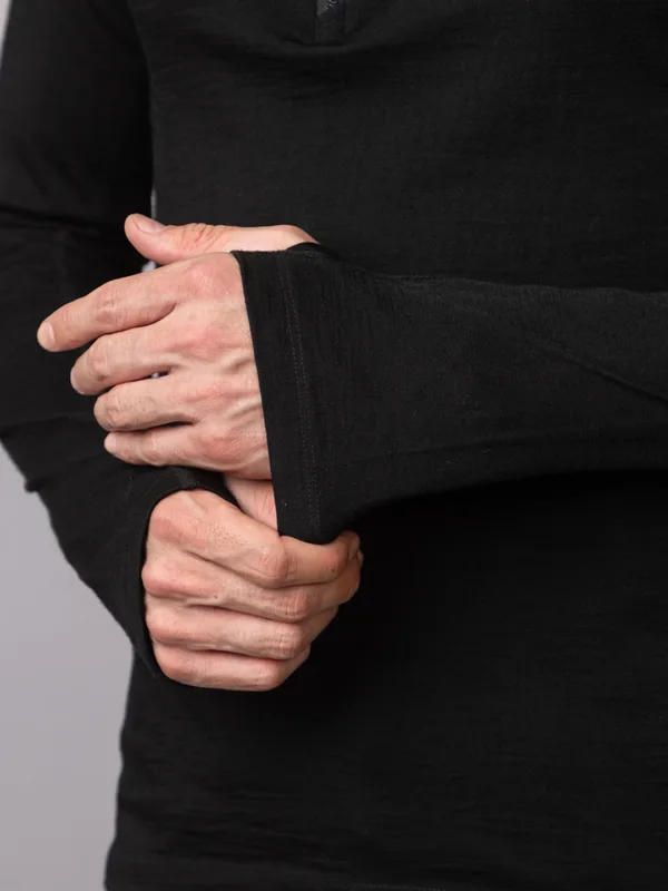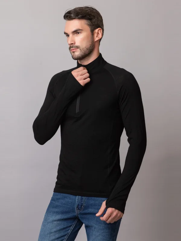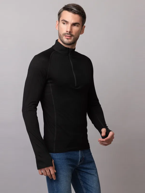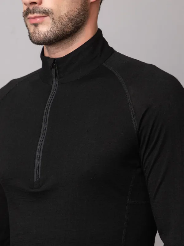 Stay warm and comfortable this winter with this black base layer. Its breathable fabric and lightweight design make it perfect for layering under other clothing, providing an extra layer of warmth without bulk.