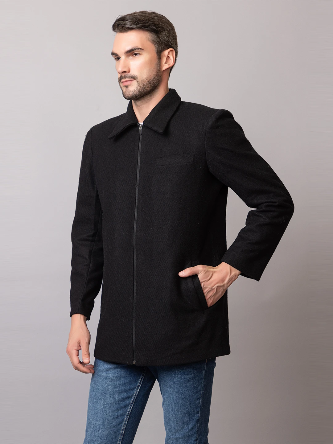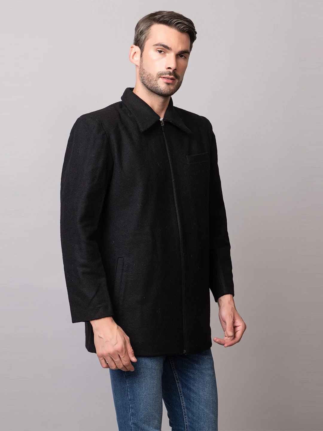 Stay warm and stylish this winter with this versatile black blazer jacket. Its loose fit and comfortable fabric make it perfect for layering or wearing on its own, adding a touch of sophistication to any outfit.