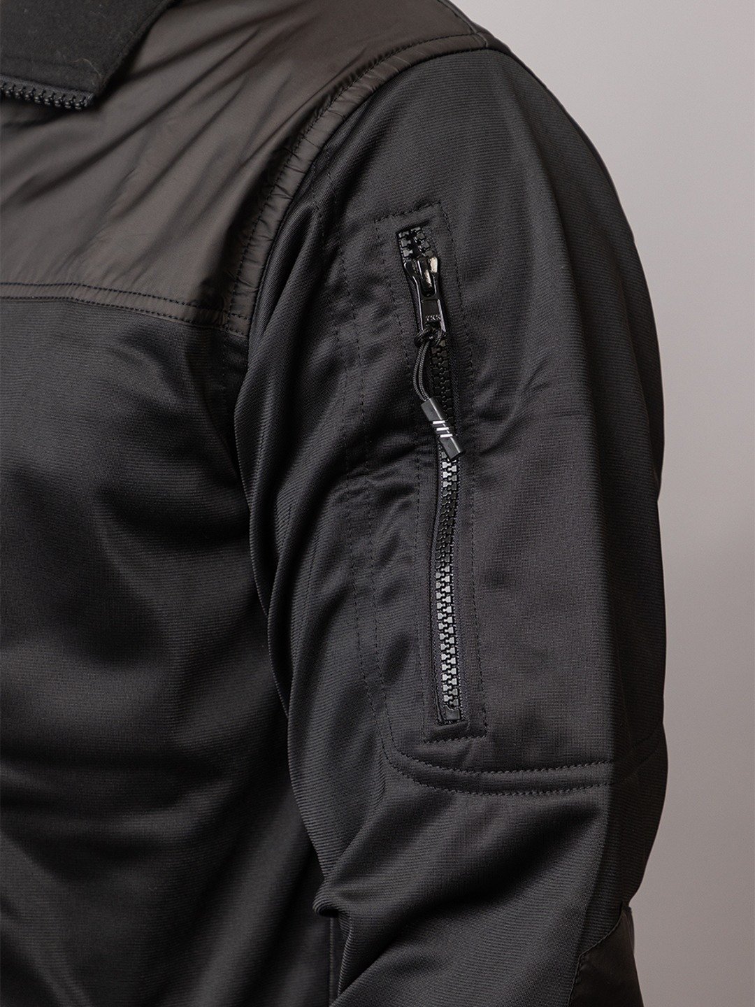 Designed with a contrast upper panel, this jacket brings a rugged yet refined aesthetic to your wardrobe. Functional details like a secure zippered chest pocket and utility sleeve pocket provide convenient storage for your essentials, keeping you ready for any situation. The long sleeves with fitted cuffs ensure a snug fit, while the adjustable hem toggle lets you customize your comfort and style.