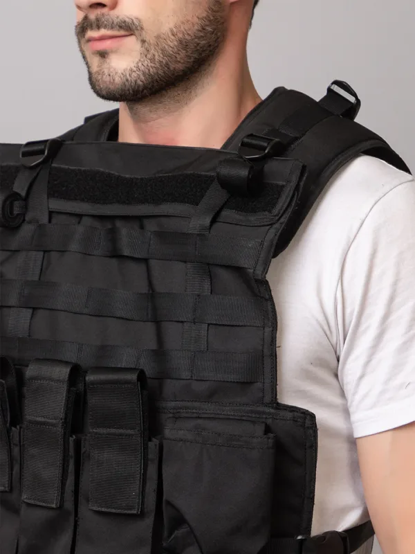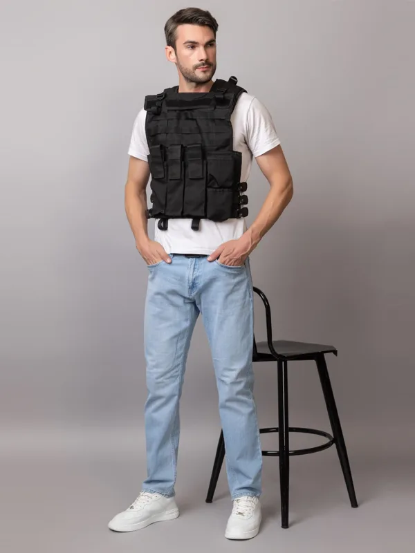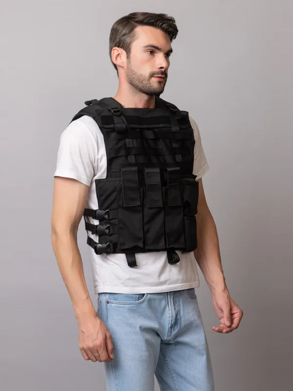 Stay organized and protected with this versatile tactical vest. Its durable construction and multiple pockets provide plenty of storage for your essentials, while the adjustable straps and cummerbund ensure a comfortable fit. The breathable mesh liner keeps you cool and comfortable, even in the most demanding conditions.