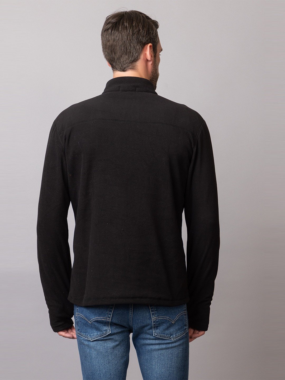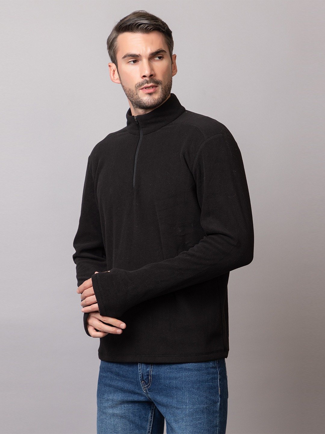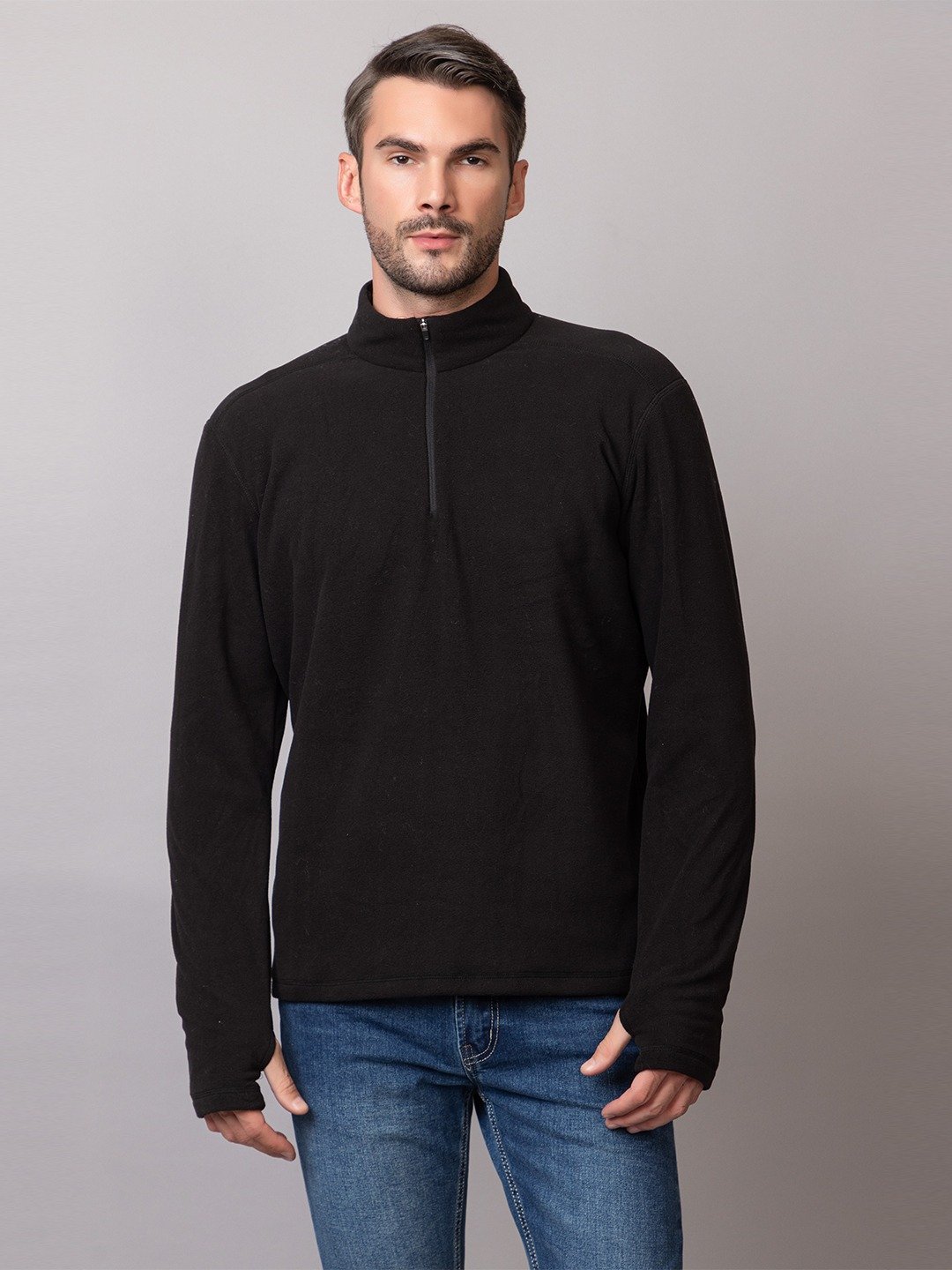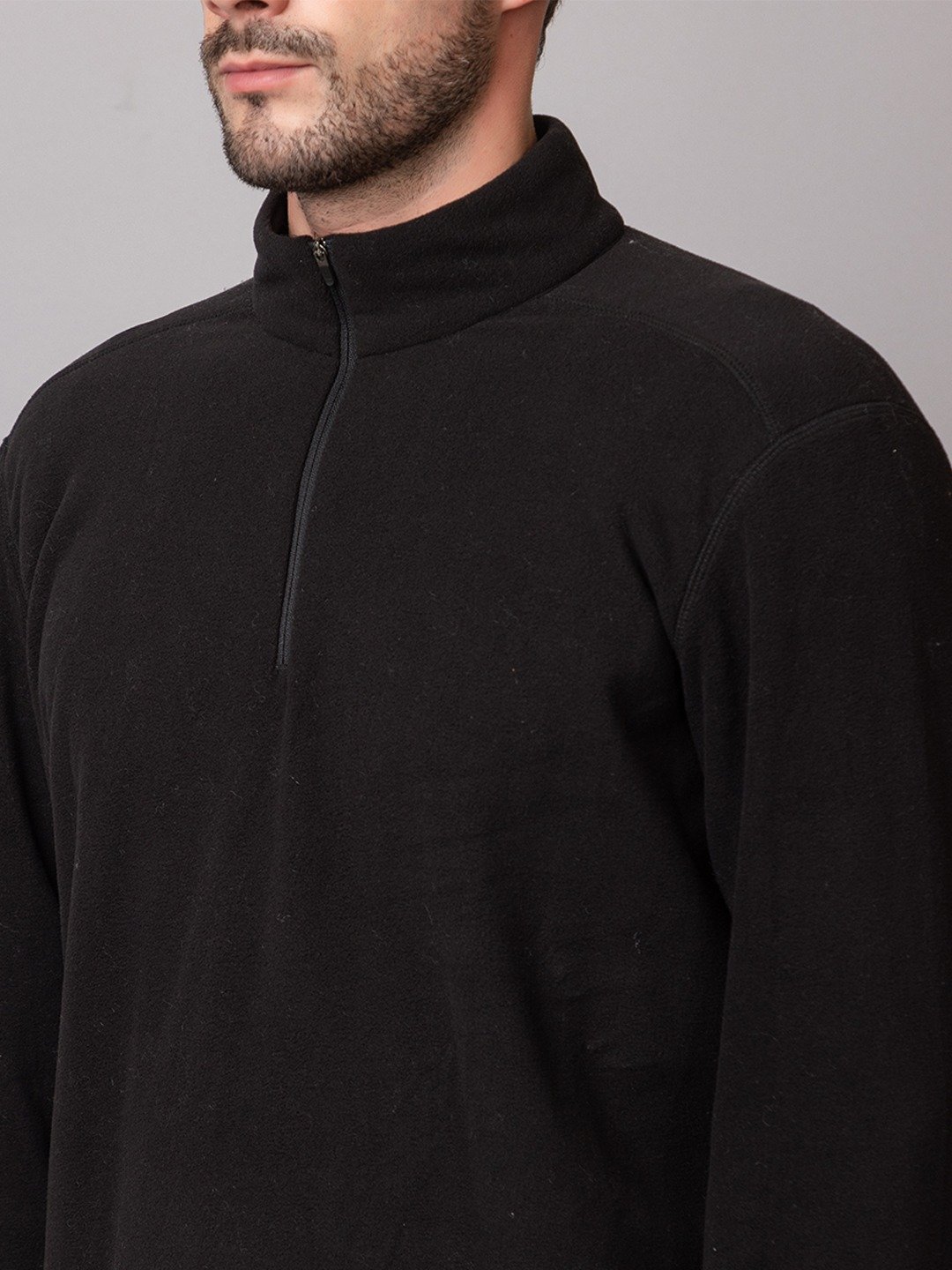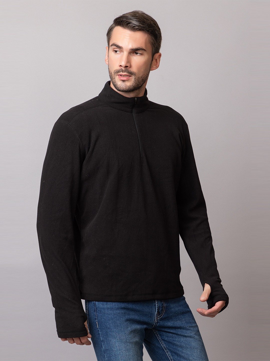 • Half zip closure with stand collar for adjustable ventilation.