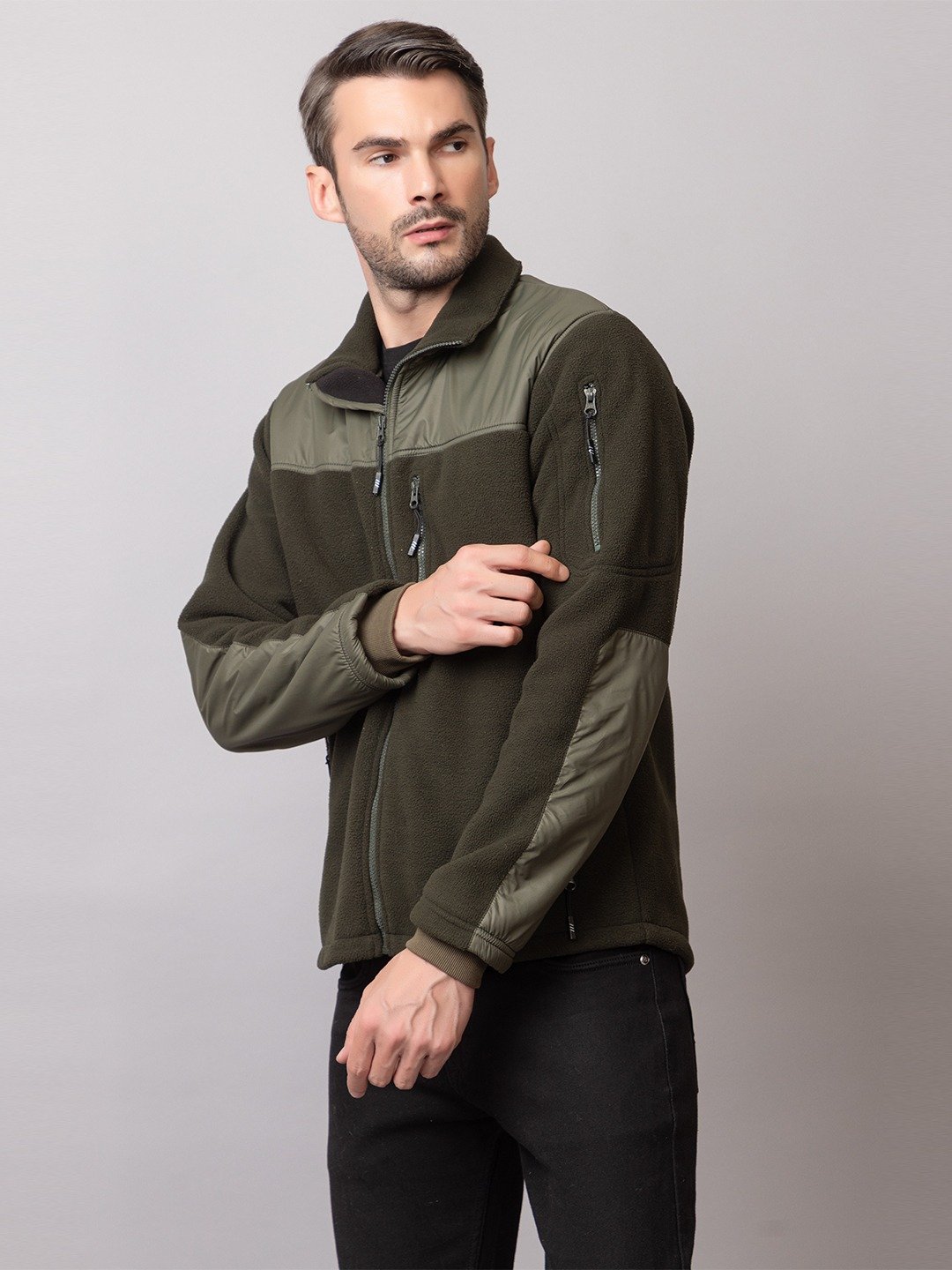 Stay warm, comfortable, and adventure-ready with the TRAILFORT Wool-Fleece Jacket — a premium layer designed for performance and modern outdoor style. The jacket features a full front zipper for hassle-free wear and a stand-up collar that adds extra protection against cold winds. Its design stands out with contrasting textured fabric on the upper chest, shoulders, and arms, adding durability and a stylish visual edge.